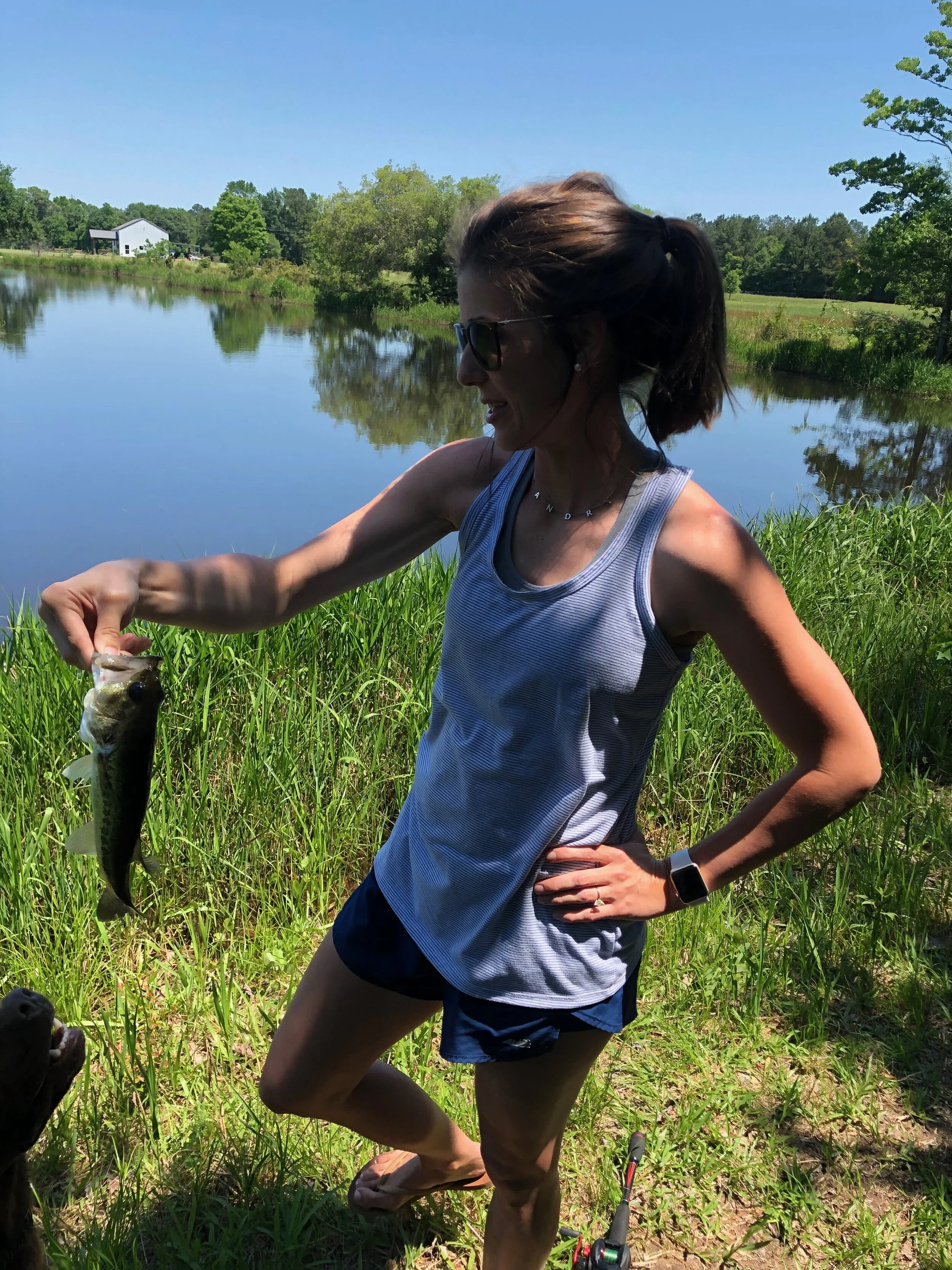 I’ve been a big fan of graphic t-shirts with blue jean shorts lately. Orrrrrr always my plain white shirt. But truly, 98% of the time, I’ve got on workout clothes like my fishing picture to have my best shot at a good tan:)